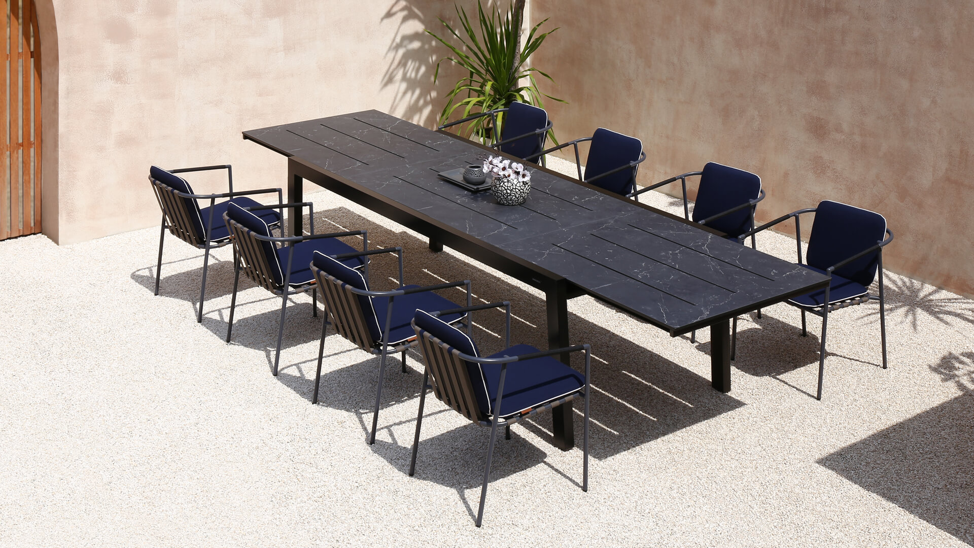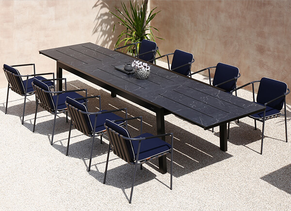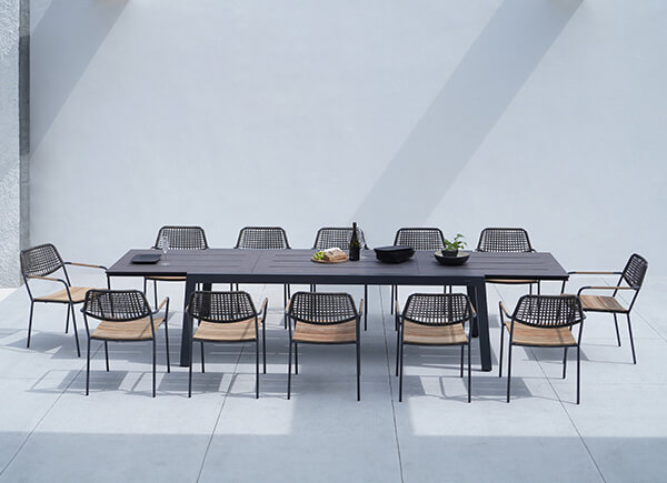 Effortlessly expandable to accommodate large gatherings, these tables are crafted from premium recycled teak or luxurious Italian high-pressure laminate tabletops, supported by stainless steel or powder-coated aluminum frames for unmatched durability.