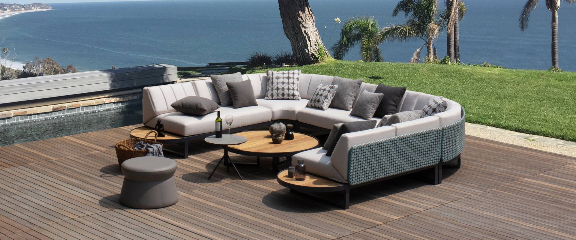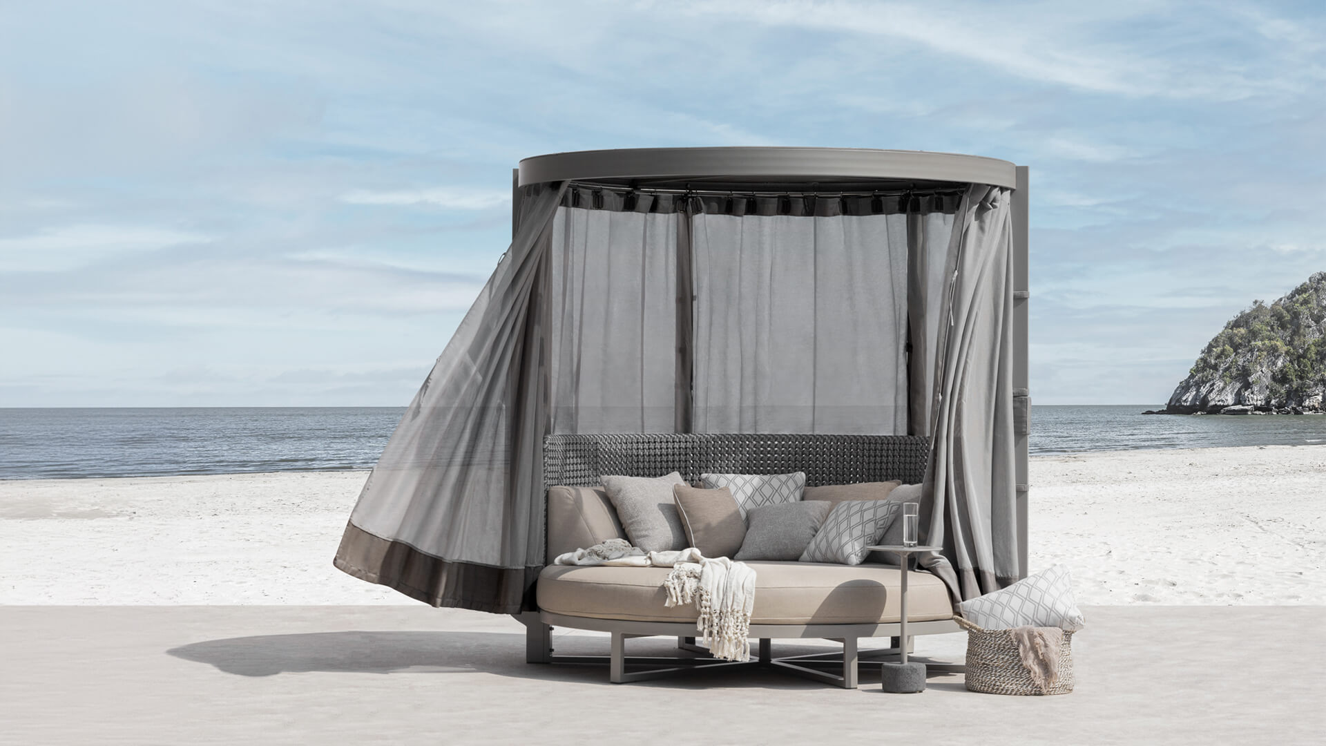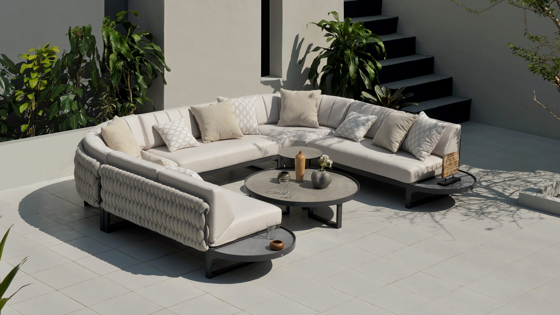 The range includes oversized round seating options like Hug, as well as Island and Dome daybeds. For modular versatility, MUNIA also offers a sectional system in various configurations, complemented by matching tables in varying heights.