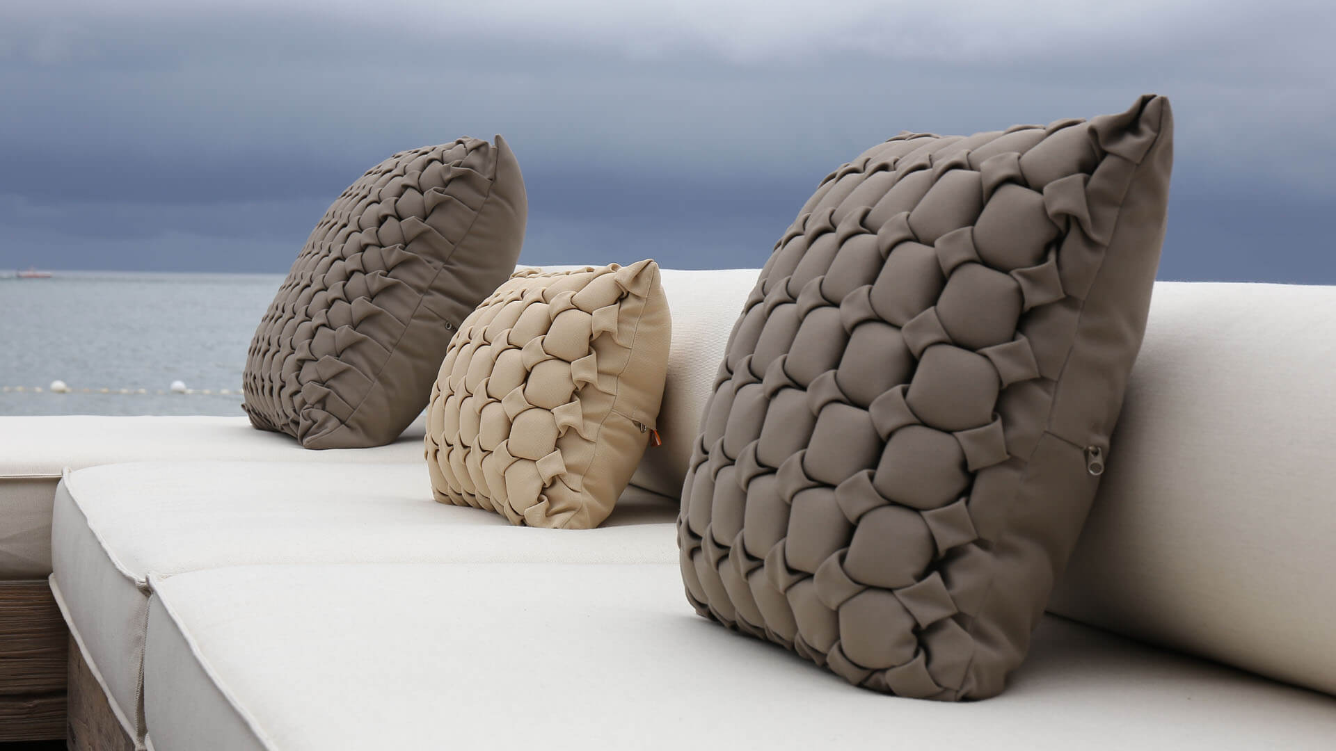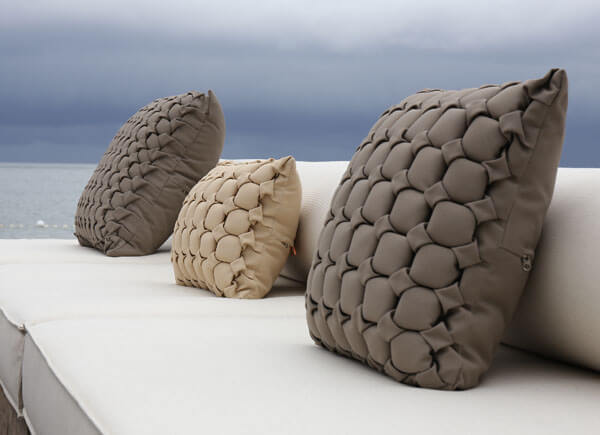 The collection includes Handmade Textured Pillows in four unique designs and a wide range of color options, perfect for adding a decorative touch. Designed to endure light rain, these pillows are ideal for outdoor use and can be quickly stored overnight when not in use.