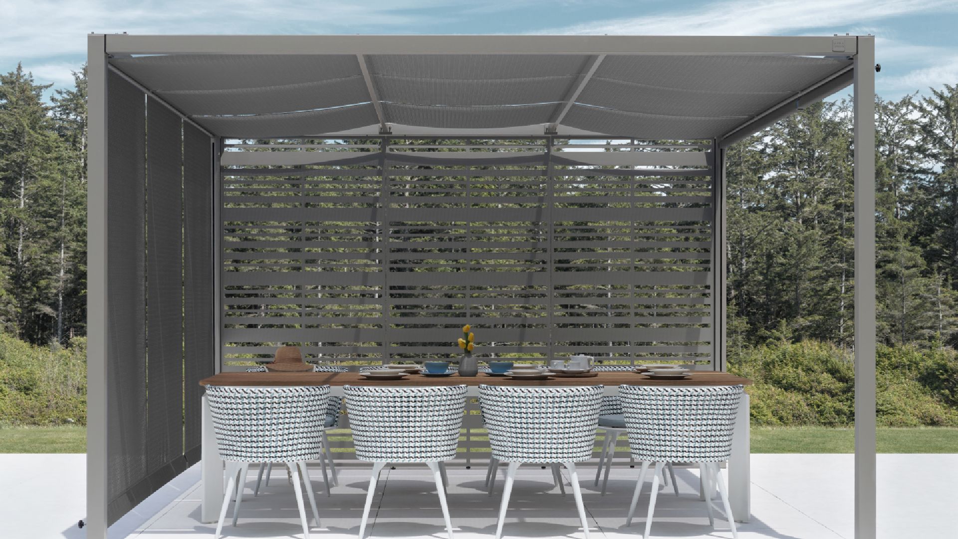 With its sleek design and flexible configuration, the SOMBRERO Canopy allows you to tailor your outdoor space to perfection, ensuring a sophisticated and protected retreat.
